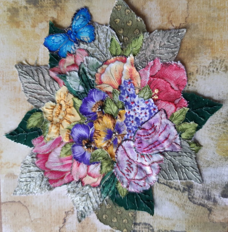 Zoals het voorbeeld van een mixed media kaart of een bloemencollage gemaakt in een workshop van Marijke van Welzen.