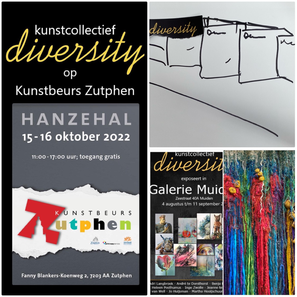 In oktober heb ik nog een laatste happening met het kunstcollectief Diversity. Hoewel wij nog een beetje aan het bijkomen zijn van de mooie expositie in galerie Muiden hebben wij inmiddels ook een ontwerp voor de kunstbeurs in Zutphen gemaakt. Ik heb nog nooit aan een kunstbeurs meegedaan en het is voor mij nog wel een dingetje. Gelukkig heb ik steun aan mijn veel meer ervaren collega’s en uiteindelijk zal het wel goed komen.