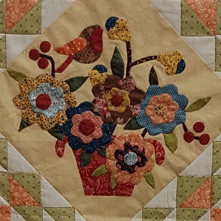 Deze TOM van de maand juli gaat over appliqueren. Heel simpel gezegd betekent appliqueren het bevestigen van het ene stukje stof op het andere. Om iets te verbergen, te repareren of als decoratie. Beroemde appliquatie quilts zijn de zogenaamde Baltimore quilts. Veel bloemen, bladeren en afbeeldingen met een diepere betekenis, zoals de hoorn des overvloeds. De techniek is heel oud en een van de eerste vormen van naaldkunst.
