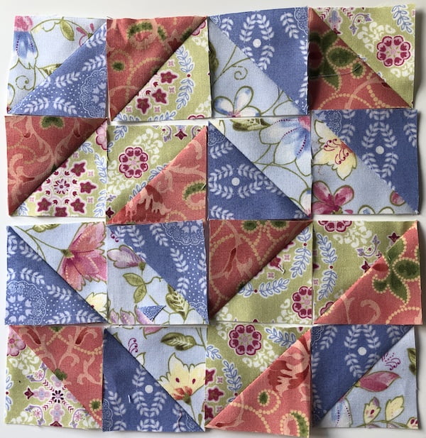 In de lijst van technieken die we in deze serie willen aanbieden kan zeker 1 techniek niet ontbreken. En dat zijn de Half Square Triangles (HST), een blok bestaande uit 2 driehoeken van contrasterende kleuren. Het wordt ook wel ‘de Nederlandse driehoek’ genoemd. Dit komt omdat het een typische techniek is die veel voorkomt in Nederlandse antieke quilts. Een heel veelzijdig blokje waar het Quiltersgilde een speciale band mee heeft.