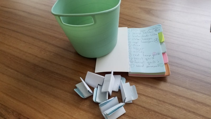 De afgelopen 4 jaar deed ik in januari mee met de opruimmaand via het YouTube kanaal van “Just get it done quilts” van Karen Brown. In 28 dagen krijg je iedere dag een ‘”opdracht” en wordt er 1 onderdeel uit de hobby spullen gesorteerd, weggegooid, gedoneerd en weer opgeruimd. En in dat proces gaat ieder jaar dus ook (bijna) alles wel door de handen.