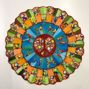 Ik noemde ze al, de quiltjes van de Flower Power challenge. Die zijn al op een aantal plaatsten in Europa te zien geweest. In 2023 in Ierland, Hongarije en België. In 2024 waren ze in Spanje en onlangs in Duitsland op de Algemene Tentoonstelling in Moers. Daarna zijn de quiltjes naar Frankrijk verstuurd waar ze in juni te zien zijn en in oktober worden ze in Oostenrijk verwacht. Nederland staat voor 2025 op de lijst om de quiltjes te mogen ontvangen. De periode en locatie zijn op dit moment nog niet bekend.