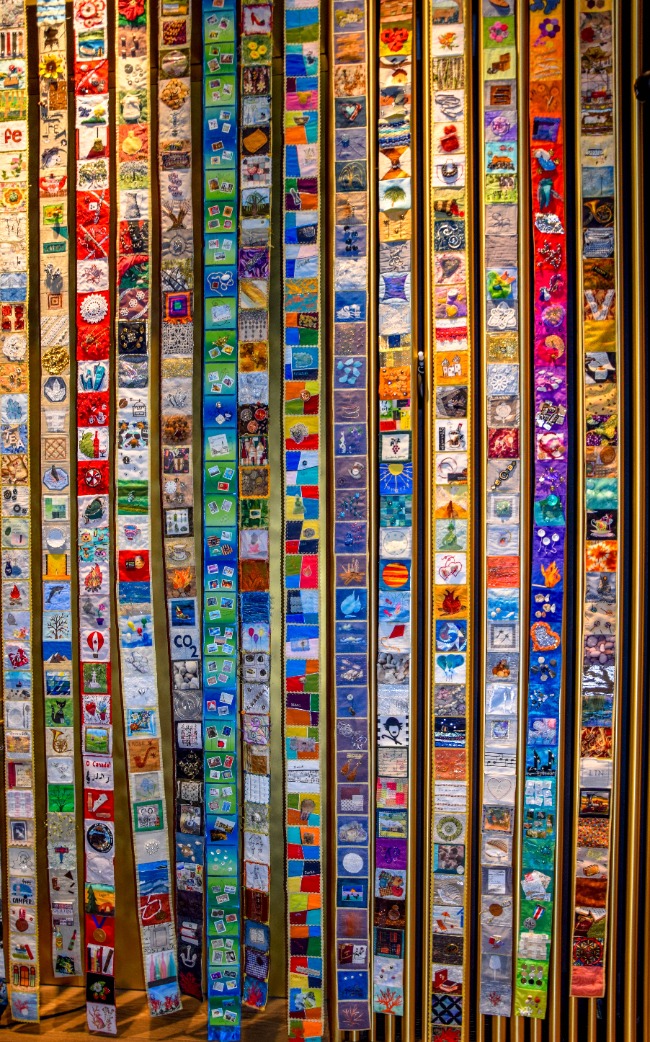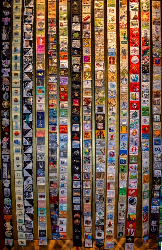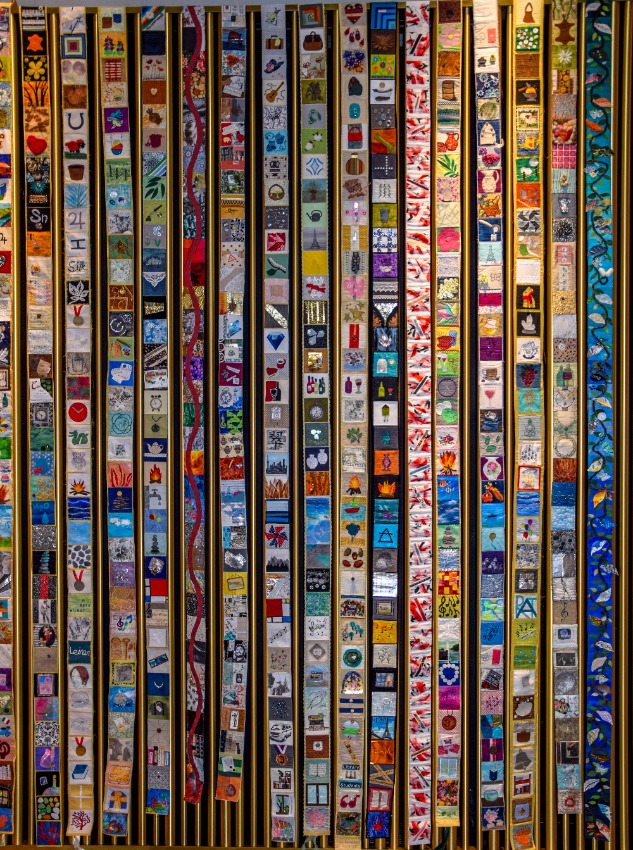 In 2024 bestond het Zwitserse Quiltersgilde 35 jaar. Ter gelegenheid daarvan werd een project gestart waarbij leden van de EQA een bobbin (klos) konden bestellen. De bedoeling was om 35 themavierkantjes te maken van 10 x 10 cm en die volgens een bepaalde volgorde aan de bobbin te bevestigen. In Nederland was het enthousiasme voor deelname groot, we hebben meer dan 150 bobbins naar Zwitserland gestuurd, de een nog mooier dan de andere. Heel veel interpretaties van de thema’s met vaak een bovenliggend thema (bijvoorbeeld huisjes, bootjes, dieren, kleur enz.). Met veel succes werden ze allemaal op de Algemene Tentoonstelling van het Zwitserse Quiltersgilde tentoon gesteld. Zelfs de president was aanwezig bij de opening. Daarna zijn de bobbins op rondreis, eerst door Zwitserland, op dit moment in Italië (Genua), in september tijdens de EPM in de Elzas en in februari 2025 naar Nederland! Tijdens de Patchwork & Quiltdagen van 13 tot en met 15 februari 2025!! Zet deze datum dus alvast in de agenda en ga op zoek naar de bobbin van jezelf, je groep of een quiltvriendin. En anders zal het vast een feest van kleuren zijn om te bekijken. Via Facebook kan je de bobbins volgen in een openbare groep klik