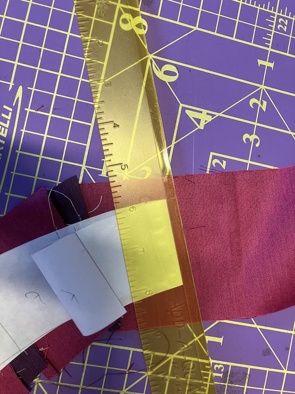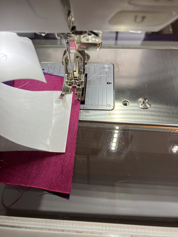 Je strijkt het freezer papier op de goede kant van de stof en vouwt het patroon op de naad om. Een goede instructie vindt je hier