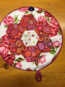 De regiodag afgelopen najaar in Swifterbant, was de stok achter de deur voor het doorquilten en de bies. De losse hexjes op de rand heb ik er voor die dag nog maar even opgespeld. Na ruim zes jaar is dit project afgerond en hangt er nu een fraaie quilt aan mijn kast; iedere ochtend genieten als ik op sta.