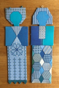 Wat ik probeer en dat lukt vaak ook is om mijn eigen idee uit te werken. Toch is de productie niet zo groot. Er zit meer in mijn hoofd dan er uit mijn handen komt. Ook is het formaat kleiner want dat is beter te hanteren onder mijn eigen naaimachine. Dat vind ik prettig want ik kan beter overzien waar ik mee bezig ben en de kans dat ik iets af maak is groter.