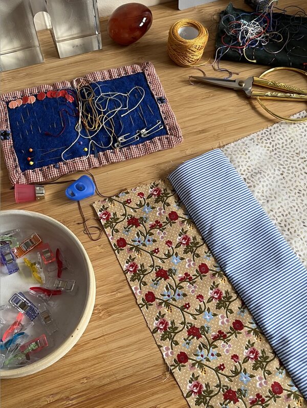“Ik quilt pas sinds januari 2023. Ik ben altijd heel creatief geweest en zie mijzelf vooral als autodidact hoewel ik wel een jaar op de kunstacademie heb gezeten. Ik zie ergens wat, en dan probeer ik het ook. Ik kreeg al op jonge leeftijd een naaimachine van mijn moeder. Met veel logisch nadenken en goed kijken, leerde ik kleding maken. Ik werk ook veel met wol en gaf ook brei-les tot Corona alles stil legde. Ik hou van het gevoel van stof en draad in mijn handen, maar textiel was voor mij altijd heel functioneel. Quilten kwam dan ook niet in mij op als kunstvorm. ”