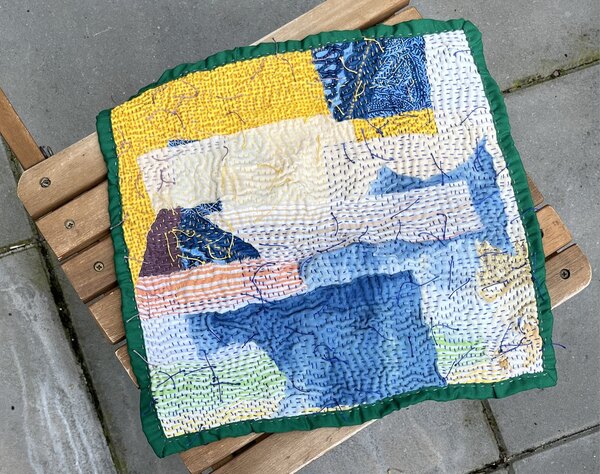 “Ik zie mezelf meer als textielkunstenaar dan als quilter maar misschien is dat ook wel vanwege mijn ietwat ouderwetse associatie met quilten. Ik voel niet dat ik daartussen pas. Gelukkig zijn er veel quilters die dat beeld doorbreken. Zo ben ik lid van de community van de Amerikaanse Zak Foster. Hij onderzoekt bijvoorbeeld via quilts zijn voorouders en hun rol in de slavernij en werkt veel met tekst. Zijn werk zit vol verhalen en onderzoek. Ik vind dat heel verfrissend en heel anders dan het traditionele idee dat ik heb van patchworkquilts.