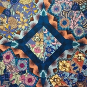 Dat bepaal je zelf. Het project loopt van tekst tot en met het ontwerp. Daarna start jouw werkproces. Het is natuurlijk fijn als er uiteindelijk een quilt uit de hoge hoed komt. Maar ook in het proefproject, was quilt 1 al voor het nagesprek klaar en de quilt 2 daarnaast is tijdens de Algemene Tentoonstelling afgemaakt en hing aan onze tafel. Je hebt het dus zelf in de hand. En wat zijn de regels dan? Verder zijn er geen regels over kleur, grootte of zo.