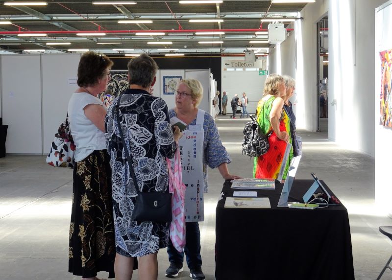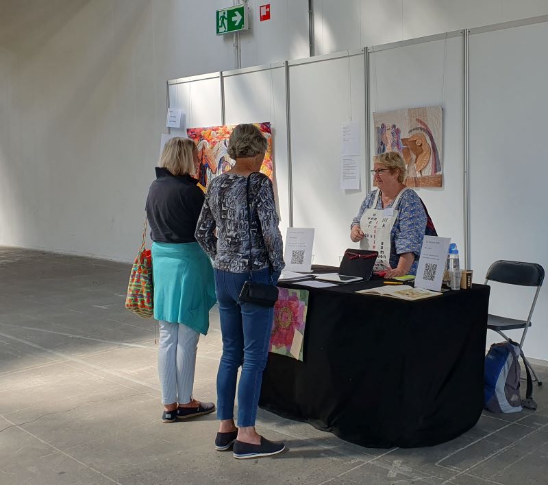 We hebben veel mensen gesproken en veel ideeën uitgewisseld. Zo’n ontmoeting levert altijd mooie en interessante gesprekken op. De mensen kwamen af op de quilts die er te zien waren. Bij iedere quilt hing de gekozen tekst en werd uitgelegd hoe de maakster aan het werk gegaan was.