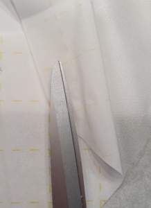 Het is onzichtbaar bij het gebruik van dunne stoffen zoals organza’s, lutradur, tule enz. En daar gebruik ik het met name voor.