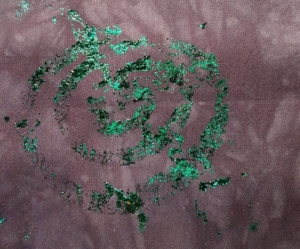 Knip kleine stukjes mistyfuse en verdeel dat over je quilt. Strijk daarover heen met foil-on. Op de plekken van de mistyfuse zal de foil blijven zitten.