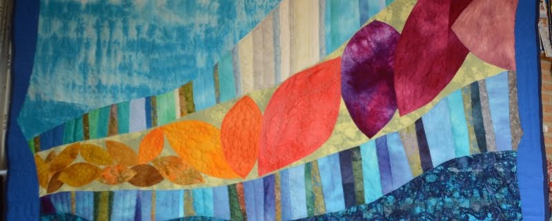 Maar de opdrachtgevers, de bewoners en ikzelf ook waren tevreden met het uiteindelijke resultaat. Al met al ben ik ruim een jaar bezig geweest; van start tot aflevering. Daarna vroeg de Herbergier of ik nog een tweede quilt zou willen maken, voor in de eethoek. Daarover meer in het volgende blog.