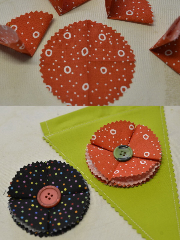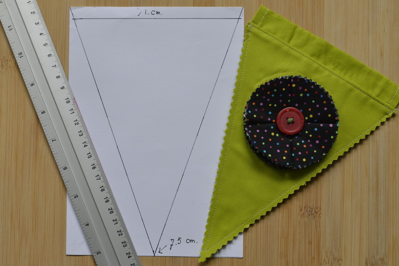 Knip 5 rondjes uit dezelfde stof. Het rondje moet binnen je vlaggetje vallen.