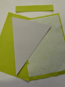 Het maken van het basis vlaggetje, neem twee stukjes stof voor het vlaggetje en een klein stukje voor de tunnel.