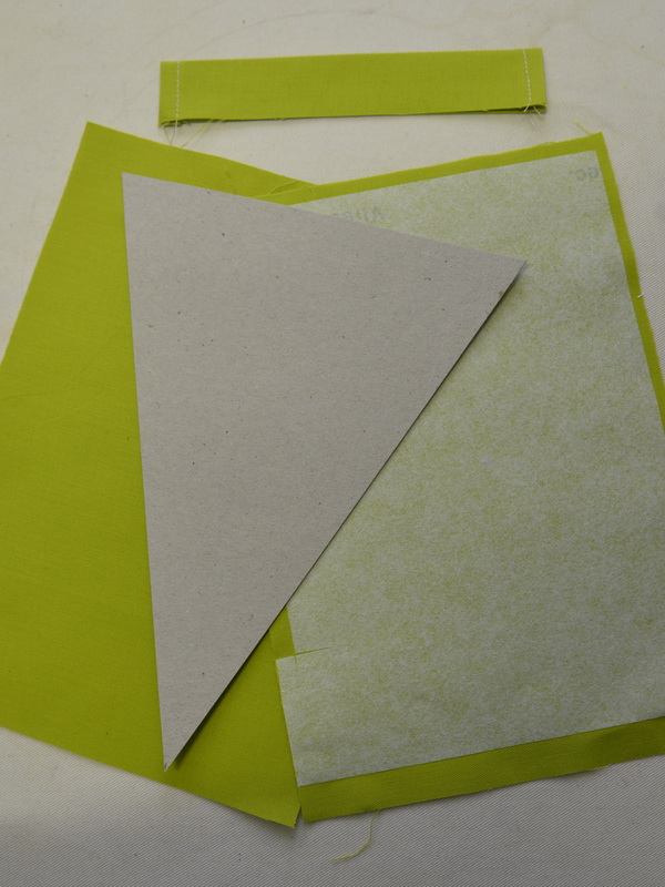 Twee stukjes katoen tegen elkaar is een beetje slap, omdat te vermijden strijk ik een stukje vlieseline tegen de binnenkant (verkeerde kant stof) van 1 vlaggetje.