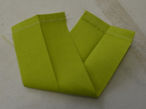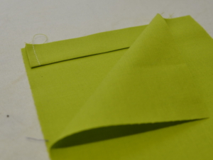 Vouw het stukje stof dubbel, verkeerde kanten tegen elkaar, strijk deze vouw.