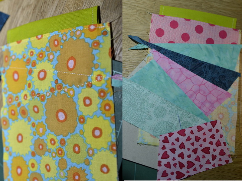Ander begin is, start met een klein blokje, daar omheen stukjes stof stikken tot de grote van je vlaggetje.