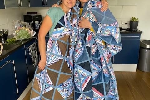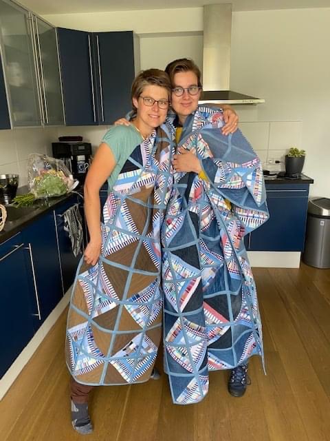- de beide dochters van Margreet van Drie met hun memoryquilts
