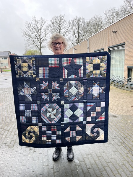 - Trynke Otter Roersma met een zelfbedachte memoryquilt