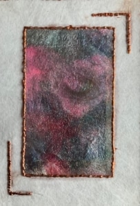Nogmaals door het boek bladereen… de kleuren zijn nu al heel mooi, ik wil het rustig houden en besluit om een raam te maken van stevige witte lutrador.