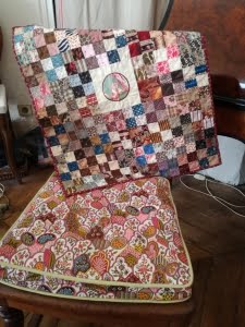 Scrapquilts is het motto hier, waar ook veel stoffen in verwerkt worden die niet voor quilts ontworpen zijn.