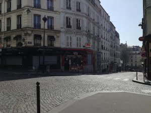 De dagen doorbrengen is geen enkel probleem. Ontbijten en het nieuws checken. Tijd nemen om donkere hoeken grondig schoon te maken en overbodige ballast op te ruimen. We zijn erg klein behuisd, een zonnig 2-kamerflatje in Montmartre, 47 vierkante meter klein, zonder balkon of tuin, maar het mooie weer komt eraan en ik kan ‘s morgens zonnebaden met het keukenraam open.