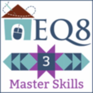Inmiddels ben ik superblij met EQ8 en ook met de extra informatie die je kunt krijgen. Via de nieuwsbrief krijg je allerhande interessante zaken binnen. Iedere maand staat er een blok in de schijnwerpers, kun je nieuwe stoffen downloaden en/of een instructieles over een bepaald onderwerp lezen. Je kunt op https://doyoueq.com heel wat projecten en blokken (uit het verleden) downloaden en invoegen in de bibliotheek van EQ. Als ik ergens in vast loop kan ik via ‘support’ direct chatten (wel met tijdsverschil rekening houden) met een medewerker in Amerika. Na de chat krijg je de informatie in een mail toegezonden. Zo heb ik al heel wat probleempjes opgelost. Ik doe iedere maand mee met ‘block in the spotlight’. Je wordt uitgedaagd om ‘gereedschappen’ in EQ8 te verkennen en te gebruiken. Je resultaat kun je uploaden en de reacties op het ingestuurde lezen. Er zijn ook ‘At home’ lessen (classes) beschikbaar via ElectricQuilt. Door zoeken, speuren, informeren en uitproberen had ik al zoveel geleerd dat ik meteen de 3e class Master skills kon doen. Deze lessen zijn video’s met ondertiteling en je kunt het in je eigen tempo volgen of herhalen zo vaak als je wilt. Dit vind ik wel een voordeel in vergelijking met groepslessen of een workshop. En de Engelse teksten worden in de computer weer vertaald. Wel blijft de Engelse versie er naast belangrijk omdat het programma in het Engels is.