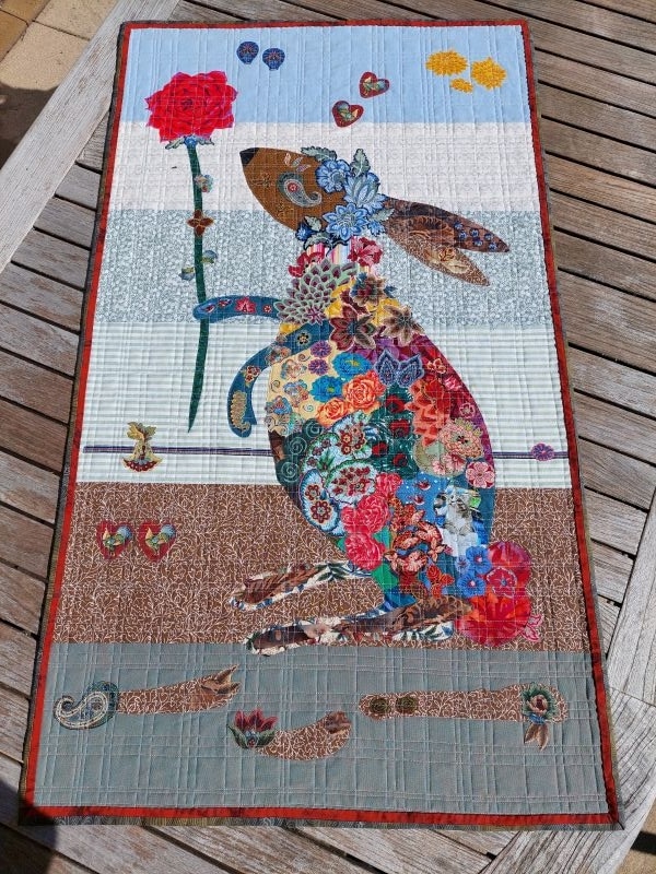 Het is een patroon van Laura Heine en heet “Hip…Hop” en is gemaakt met de collage-quilting techniek.