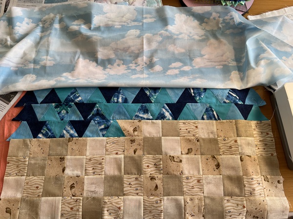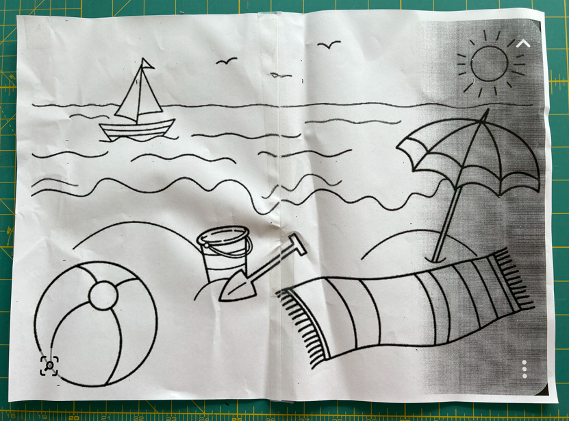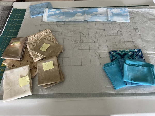 Ik ben mijn kast in gedoken en heb nog een doos staan met strandstofjes. Al gauw hadden we het ontwerp klaar en zijn we ieder met onze hobby aan de slag gegaan. We hebben ons meteen opgegeven dat wij samen een ‘kunstwerk’ zouden inleveren.